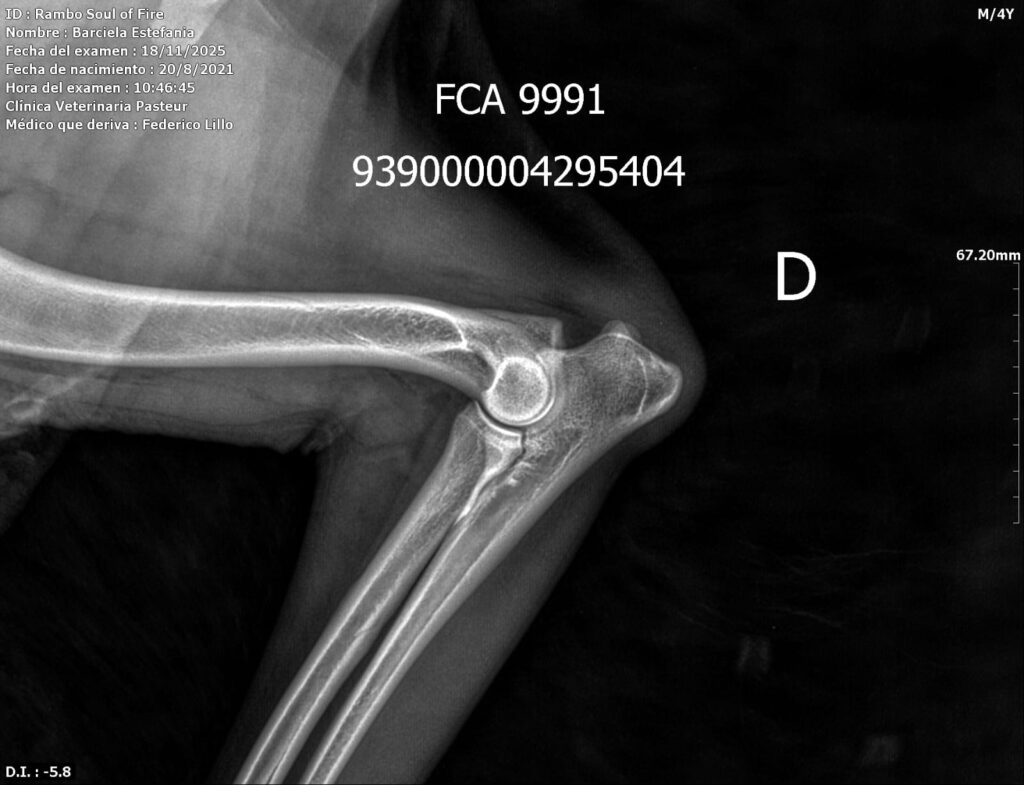 Seguiremos incorporando estudios de caderas y codos a medida que nuestros perros alcanzan la edad correspondiente, reafirmando nuestro camino de crianza seria, transparente y basada en evidencia veterinaria.